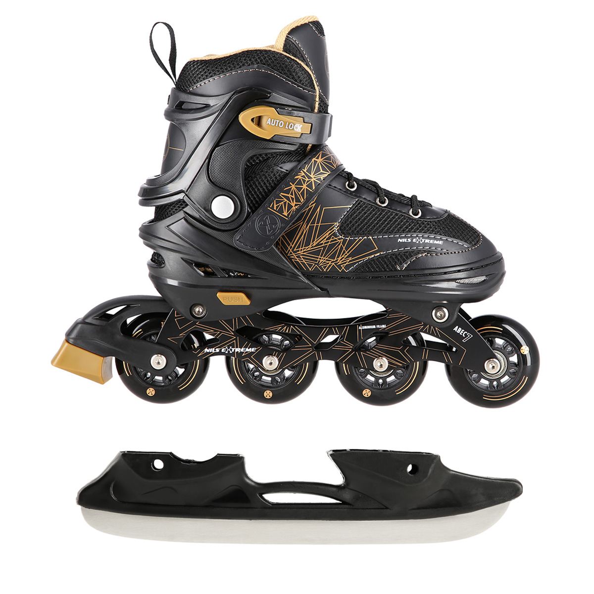 NH18192 riedučiai yra grynas čiuožimo džiaugsmas. Dėl galimybės perkelti papildomą ratą ant galinės ašies, riedučiai funkcionaliai virsta riedučiais. Šis sprendimas padės patiems mažiausiems čiuožtojams žengti pirmuosius žingsnius šioje sporto šakoje. Savo ruožtu ant priekinės ašies sumontavus papildomą ratą gaminys paverčiamas riedučiu. Pačiūžoje sumontuota speciali aliumininė bėgika ir stabdis, užtikrinantis saugumą čiuožimo metu. Savo ruožtu ABEC7 klasės ratai ir guoliai leidžia sumažinti pasipriešinimą riedėjimui, o tai reiškia greitesnį važiavimą.